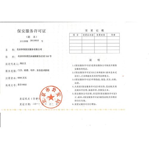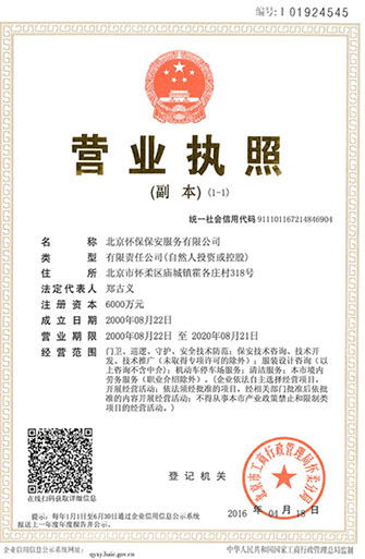 北京怀保保安有限公司是北京市公安厅批准设立,北京市保安协会直属管理的省属保安公司,北京怀保保安有限公司员工主要来自专业学校,部队复转军人,转业干部等各种专.......